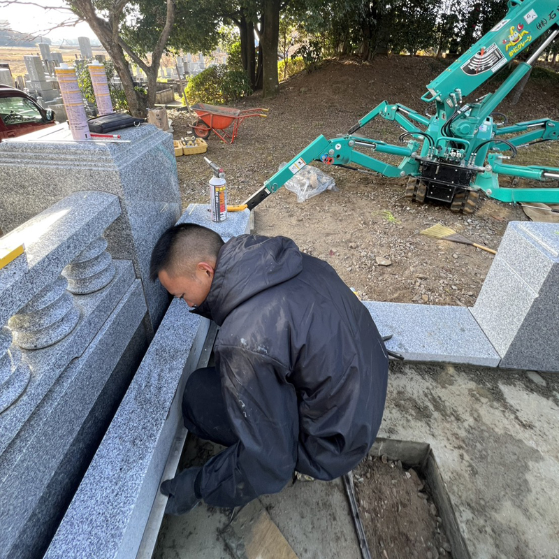 施工事例 2024.10.292026.01.19 sub_keyvisual_backpic_sekoujirei どんな現場でも、必ず対応します。 当社は、機械が使えないような現場でも、手作業ですべて対応可能です。 狭い場所なら人力で。そして広い場所であれば当社の機械を使って作業します。 ※施工事例を10件追加しました(2026年1月更新) お墓の施工03 墓地参道の暗渠・浸透枡・排水工事 狭い場所へ機械や石材を運ぶ様子 お墓の施工02 寺院の納骨堂 お墓の基礎工事 寺院 墓じまい 納骨堂の施工02 墓地の改修工事02 お墓の施工01 鳥居の施工+大材の移動 納骨堂の施工 墓地の改修工事01 お寺の寺表取り付け作業 墓地の基礎解体工事